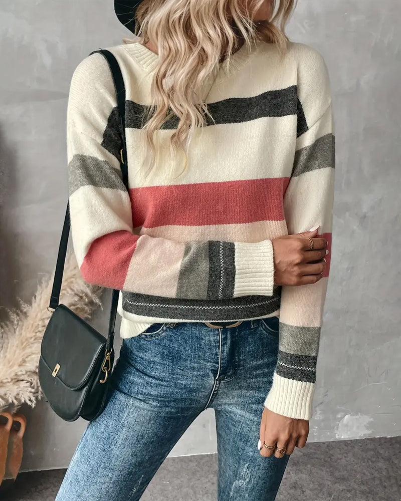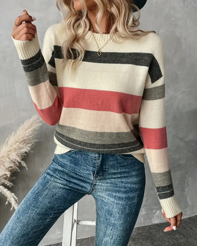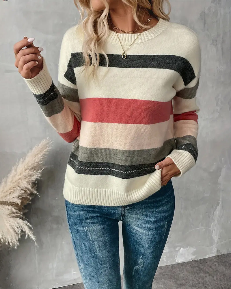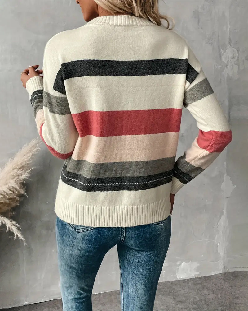 Gestreifter Kontrastpullover Mit Langen Ärmeln