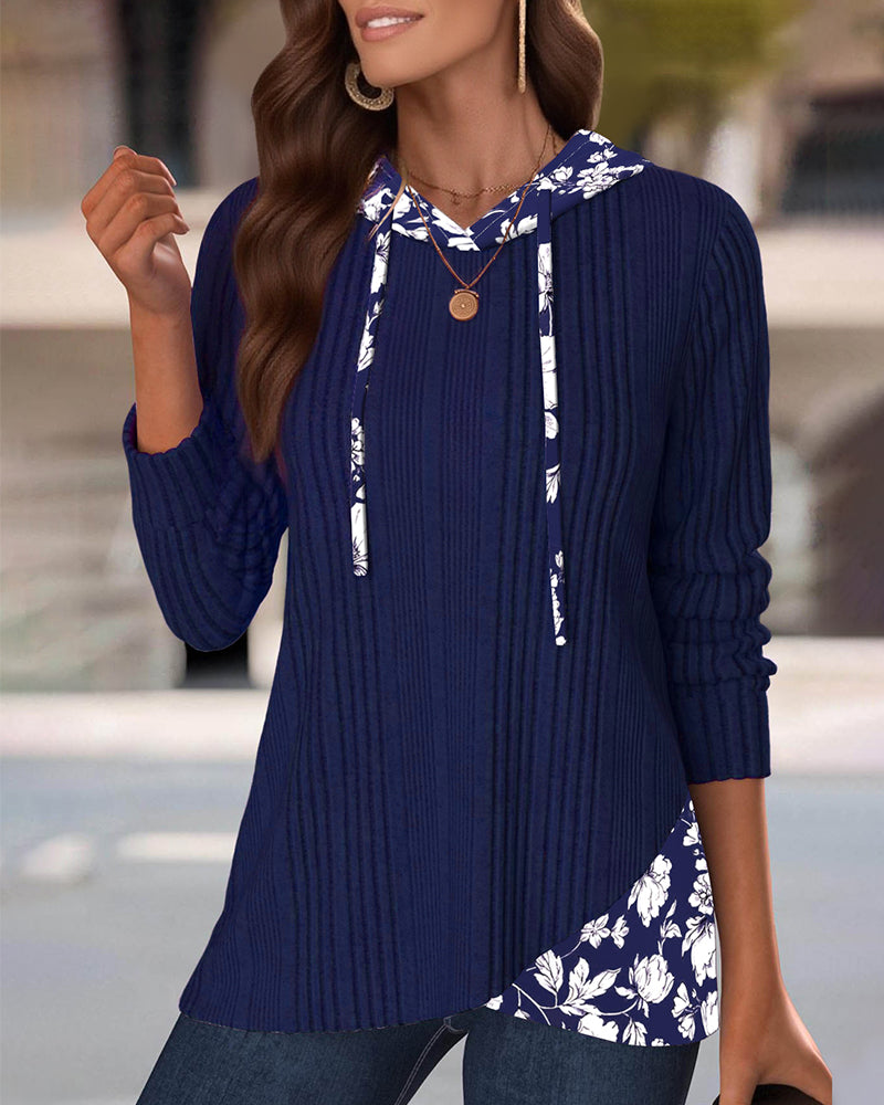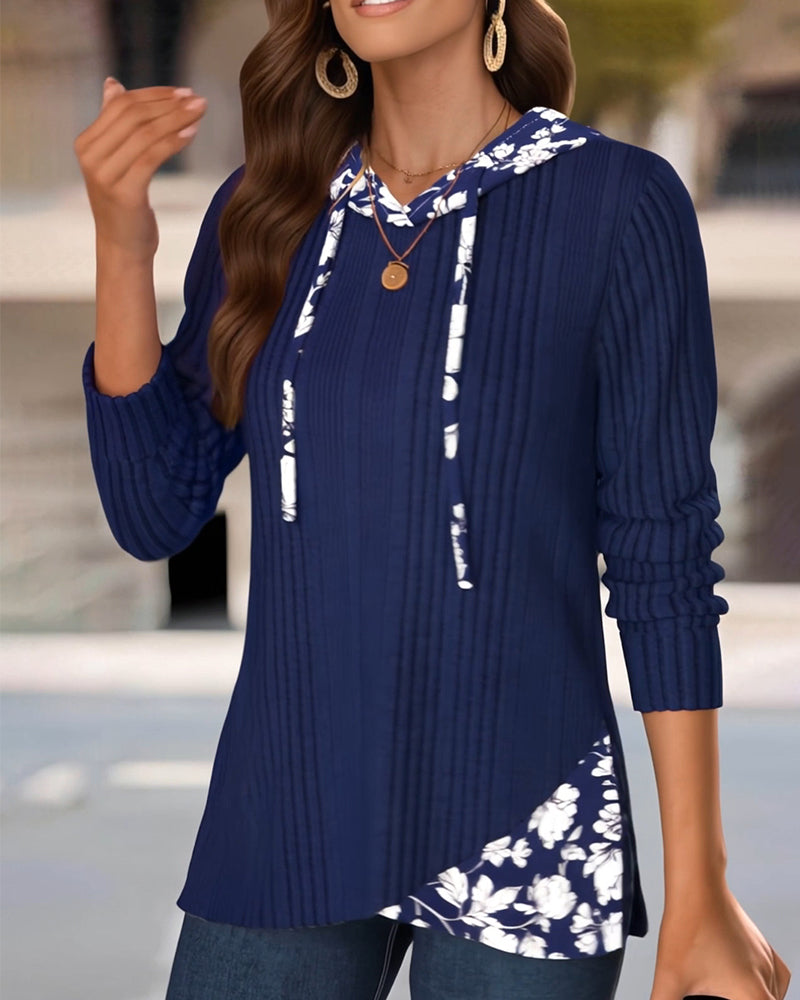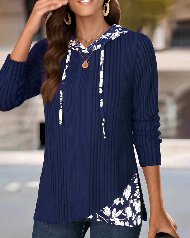 Kapuzenpullover mit Patchwork- und Blumenmuster