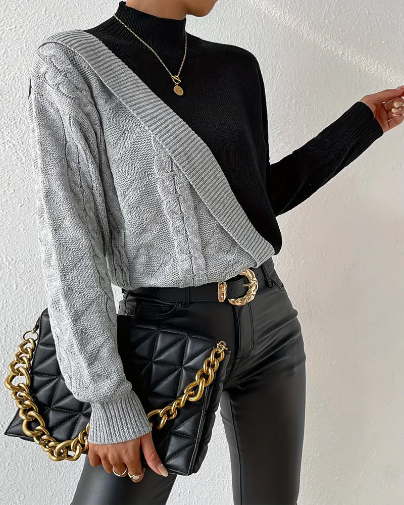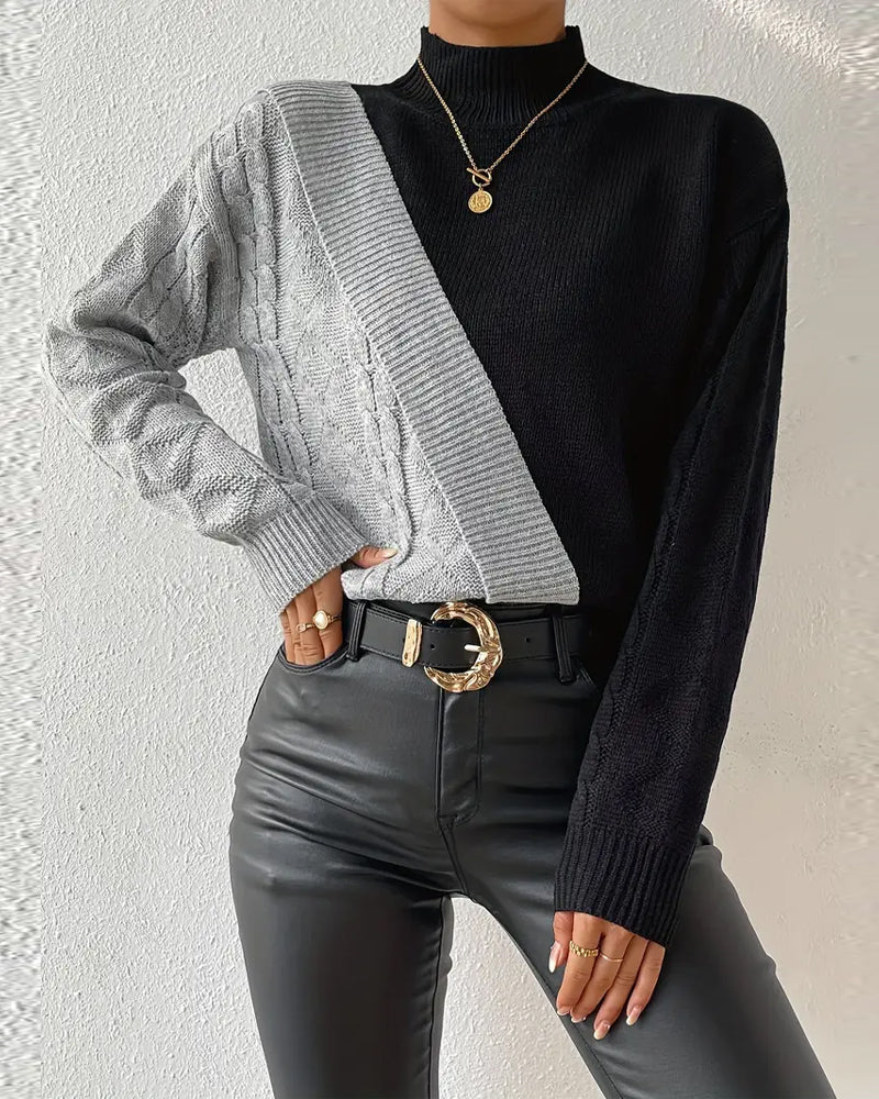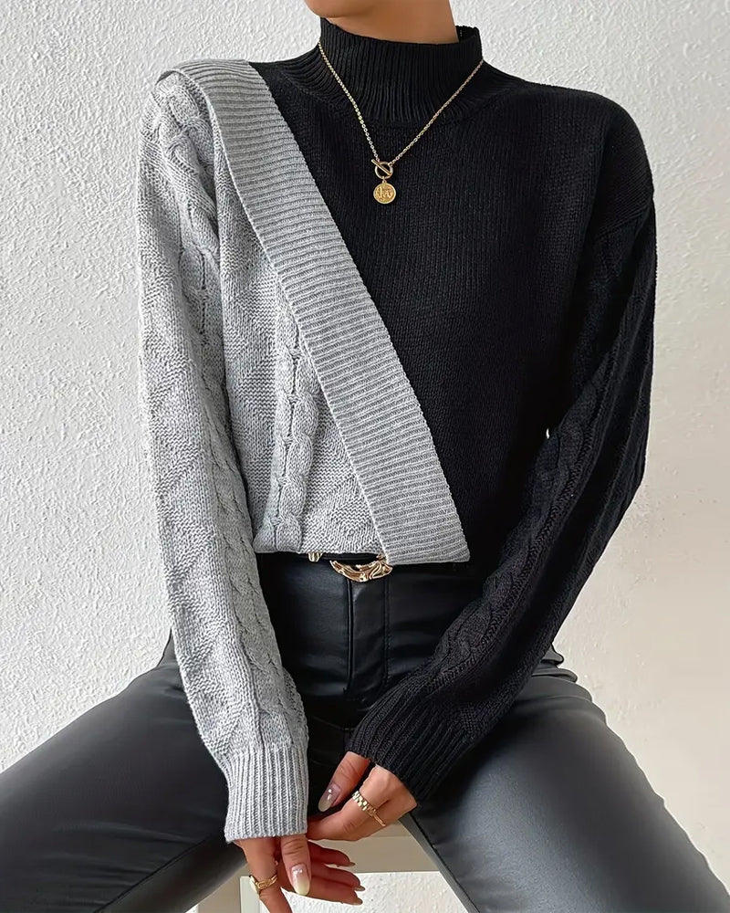 Pullover Rollkragen Kontrast Langarm